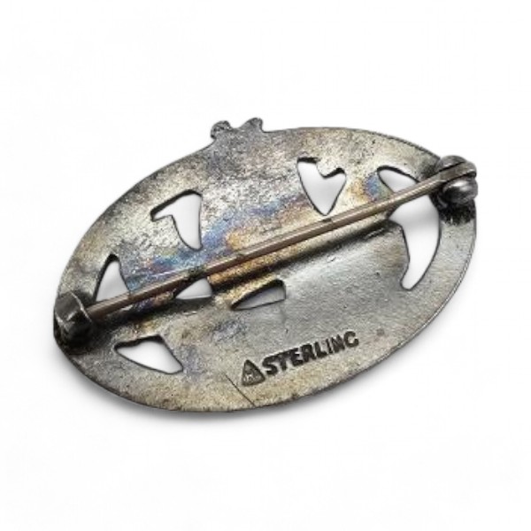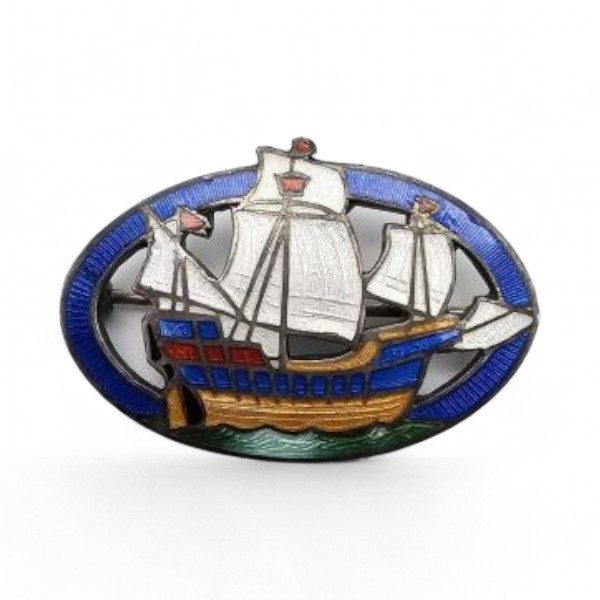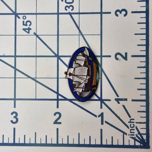 H Guilloche Enamel Sterling Silver Blue Ship Brooch 5.3 G