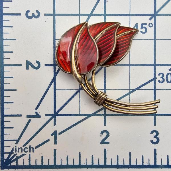 Norway Bernard Meldahl Guilloche Enamel Sterling Silver Red Leaf Brooch 14.9 G