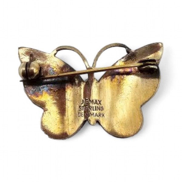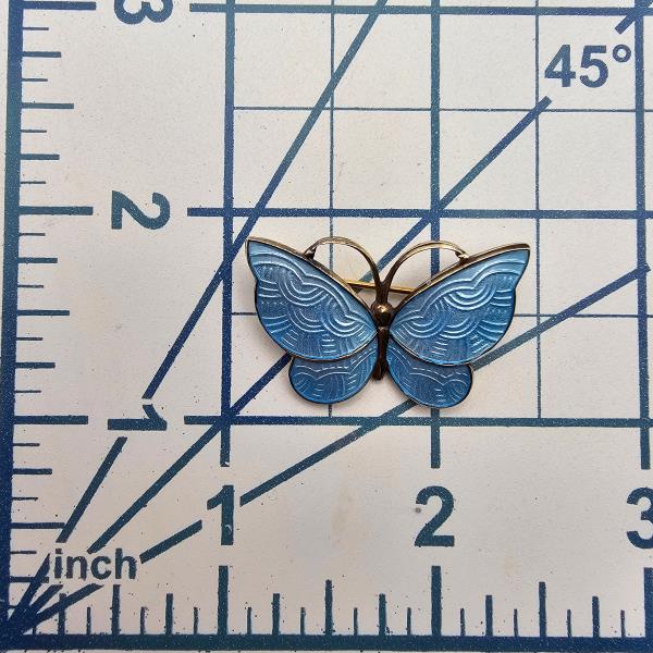 Denmark Jemax Guilloche Enamel Sterling Silver Blue Butterfly Brooch 4.8 G
