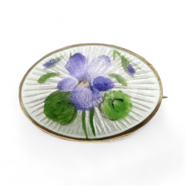 Norway OPRO Produkter Guilloche Enamel Sterling Silver Pansy Flower Brooch 2.7 G