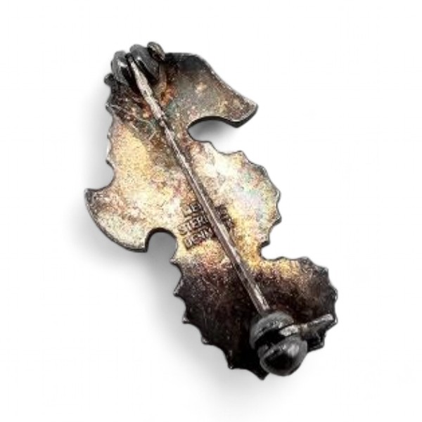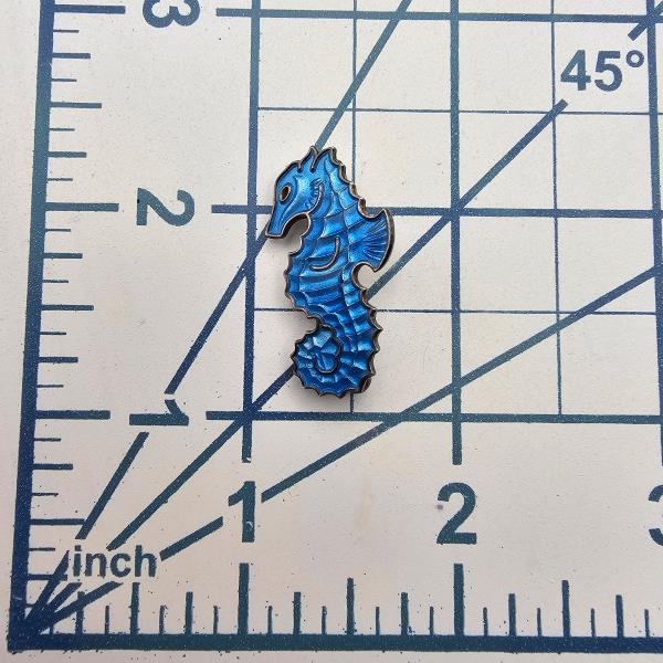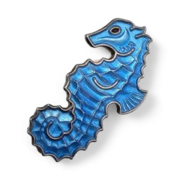 Denmark MEKA Guilloche Enamel Blue Seahorse Brooch 3.8 G