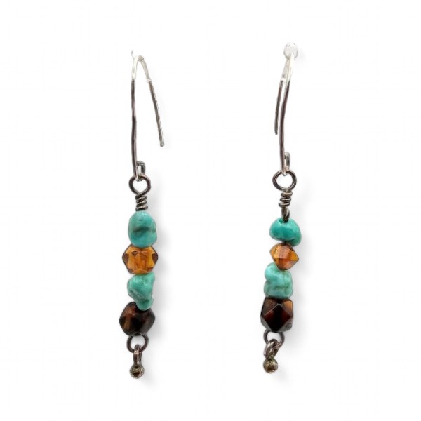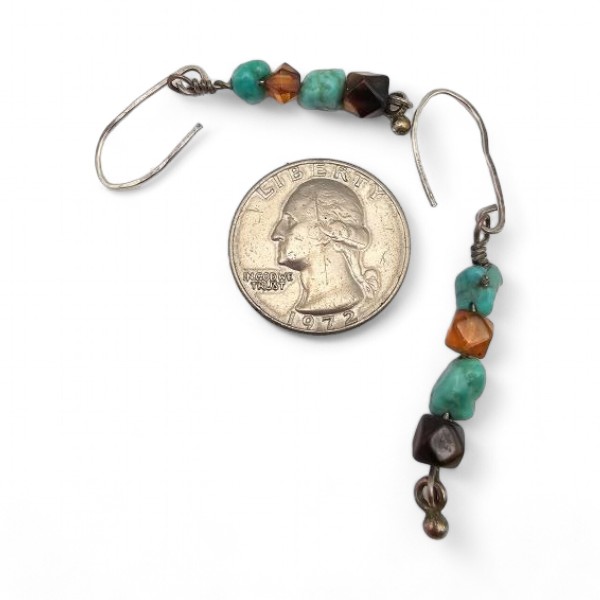 Turquoise Bead Sterling Silver Drop Dangle Earrings 2.8 G