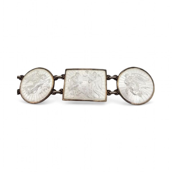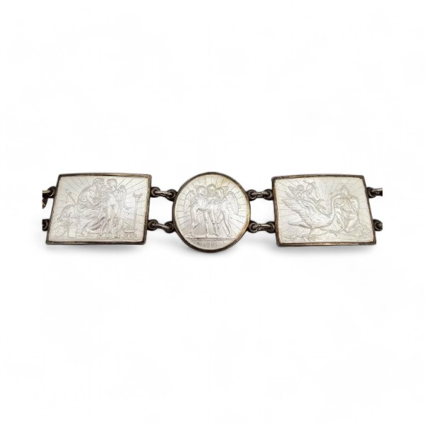 Denmark MEKA Guilloche Enamel Sterling Silver White Thorvaldsen Gauymedee Jupiter’s Eagle Bracelet 39.4 G