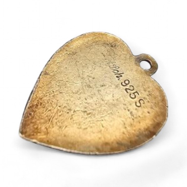 ALch Guilloche Enamel Sterling Silver Light Blue Heart Pendant 2 G