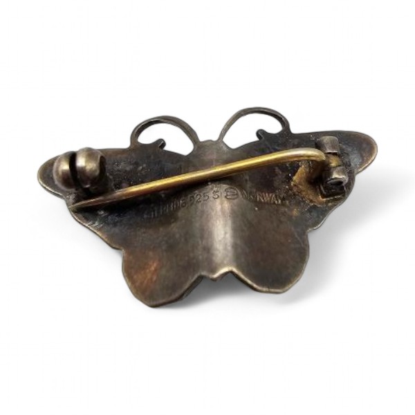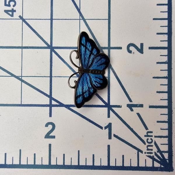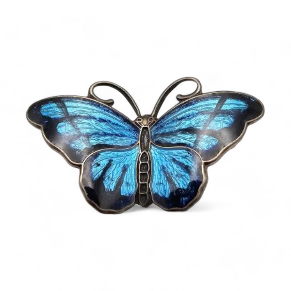Norway Hroar Prydz Guilloche Enamel Sterling Silver Blue Butterfly Brooch 3.3 G