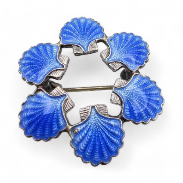 Denmark VB Volmer Bahners Guilloche Enamel Sterling Silver Blue Seashell Circle Brooch 5 G