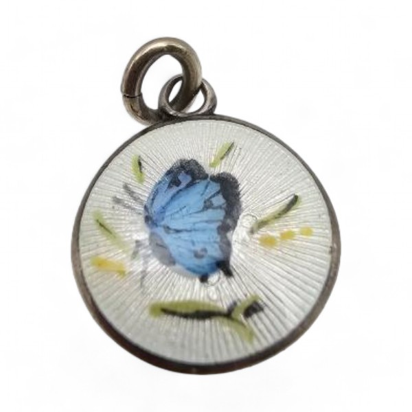 H Guilloche Enamel Sterling Silver Butterfly Pendant 2.9 G