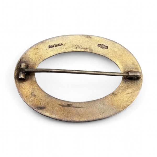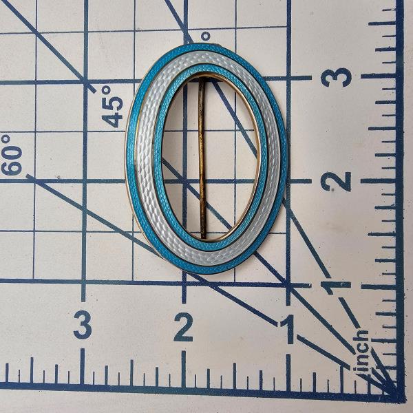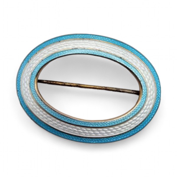 Signed Guilloche Enamel Sterling Silver Blue White Brooch 16 G