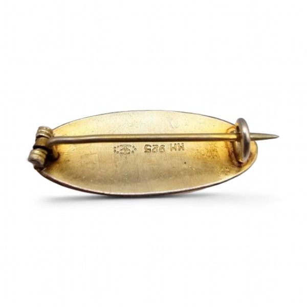 KH Guilloche Enamel Pink Black Gold Brooch 3.9 G