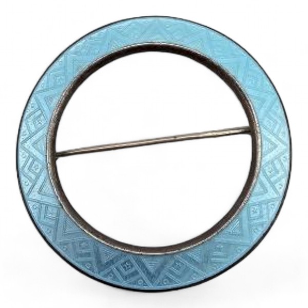 Scandinavian Signed Guilloche Enamel Sterling Silver Circle Brooch 7.3 G