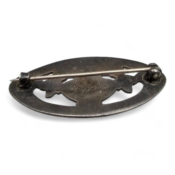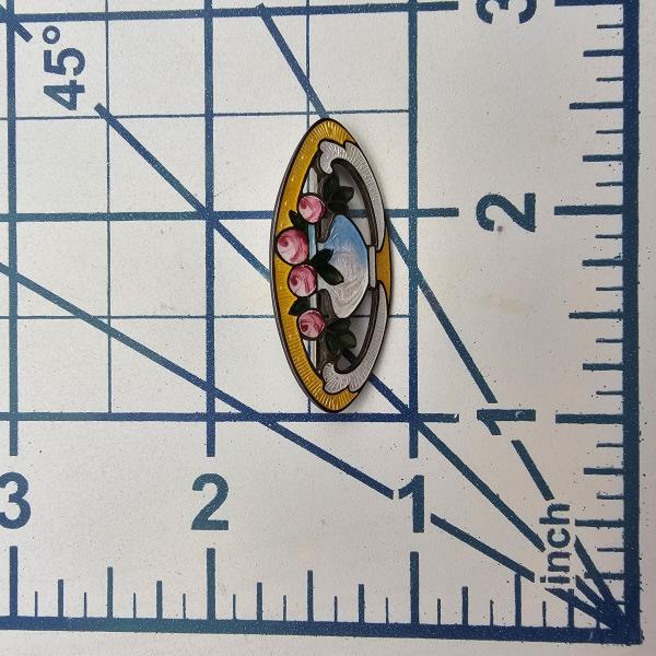 H Guilloche Enamel Sterling Silver Bowl of Flowers Brooch 3.9 G