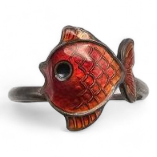 Guilloche Enamel Sterling Silver Fish Adjustable Ring 1.9 G
