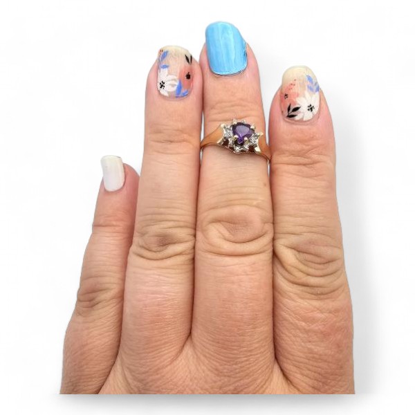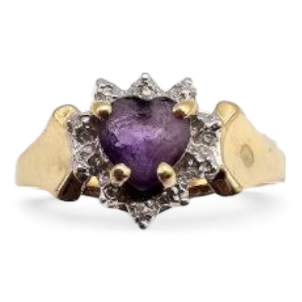P Amethyst Diamond 14K Gold Cocktail Ring Sz. 6.75, 2.2 G