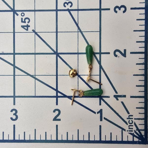 Jade 14K Gold Drop Dangle Earrings 0.8 G