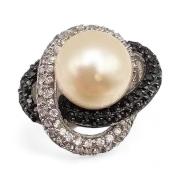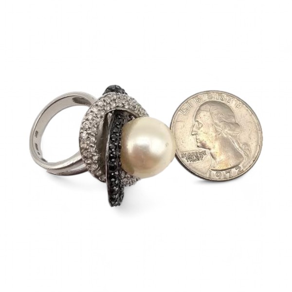Signed Cubic Zirconia Pearl Sterling Silver Cocktail Ring Sz. 7, 13.2 G