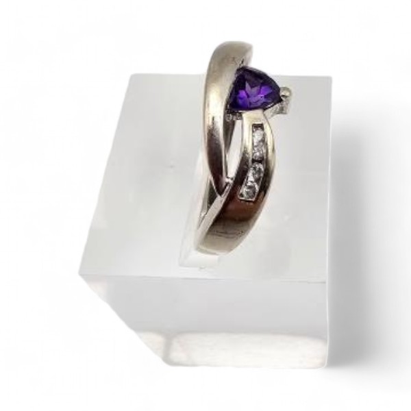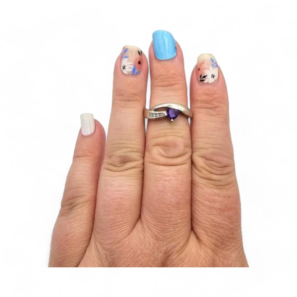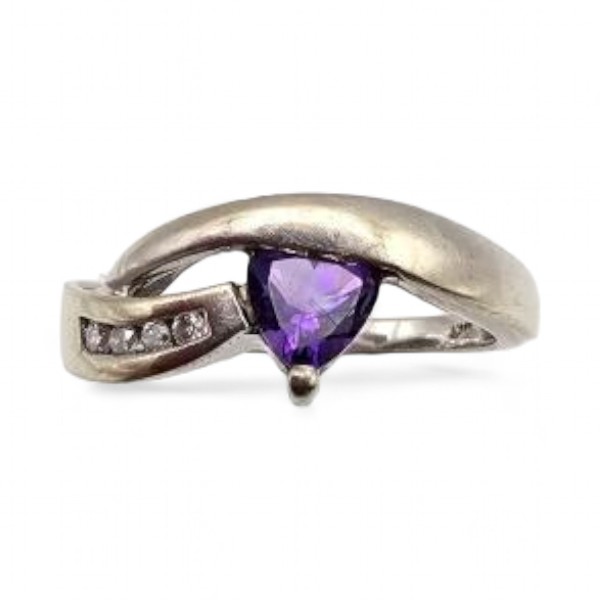 FD Amethyst Diamond 10K White Gold Cocktail Ring Sz. 6.25, 3.6 G