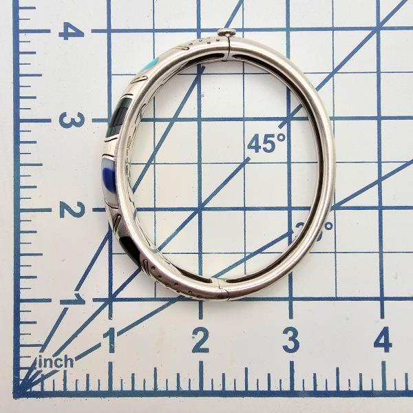 “AG” 18K Gold Sterling Silver Mother Of Pearl Onyx Malachite Turquoise Coral Inlay Hinge Bangle Bracelet 34.4 g