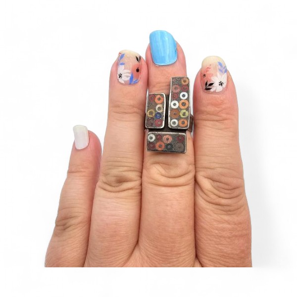 Luis Galarza Inlay sterling Silver Mid Century Ring Adjustable 6.9 G