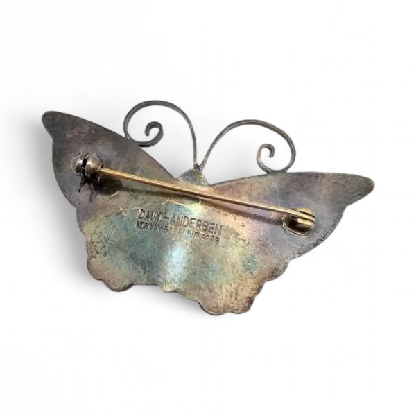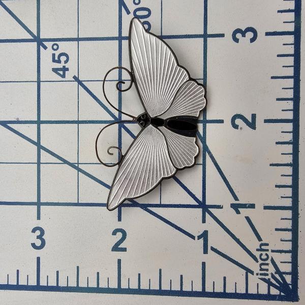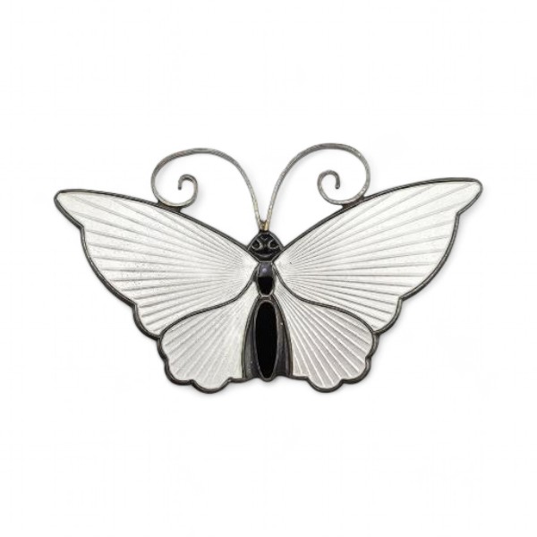 Norway David Andersen Guilloche Enamel Sterling Silver White Butterfly Brooch 10.5 G