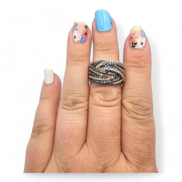 Diamond Sterling Silver Cocktail Ring Sz. 7.5, 7.7 G