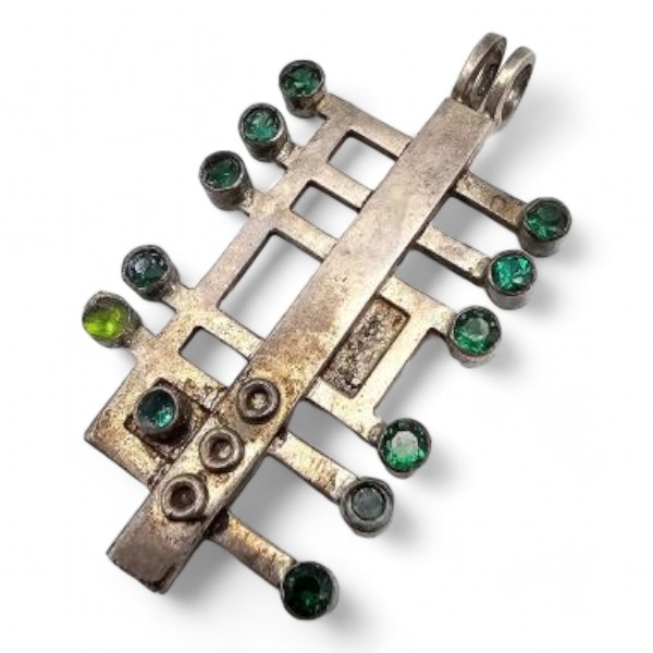 Taller Dayasamn Rhinestone Sterling Silver Modernist Pendant 13.6 G