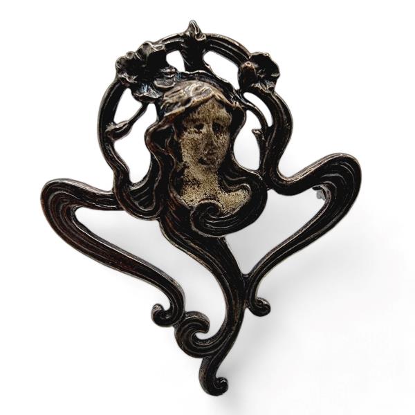 Vintage Sterling Art Nouveau Flower Maiden Brooch 9.3g
