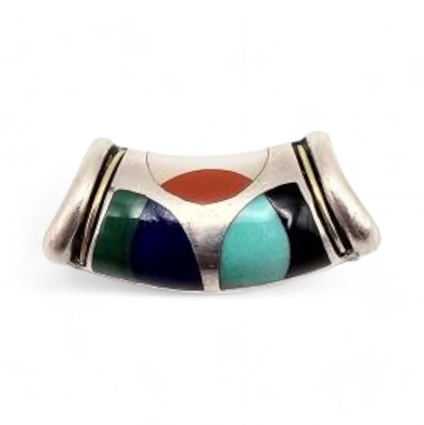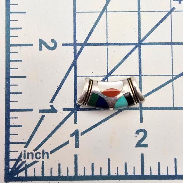 “AG” 18K Gold Sterling Silver Mother Of Pearl Coral Lapis Turquoise Pendant 5.4 g