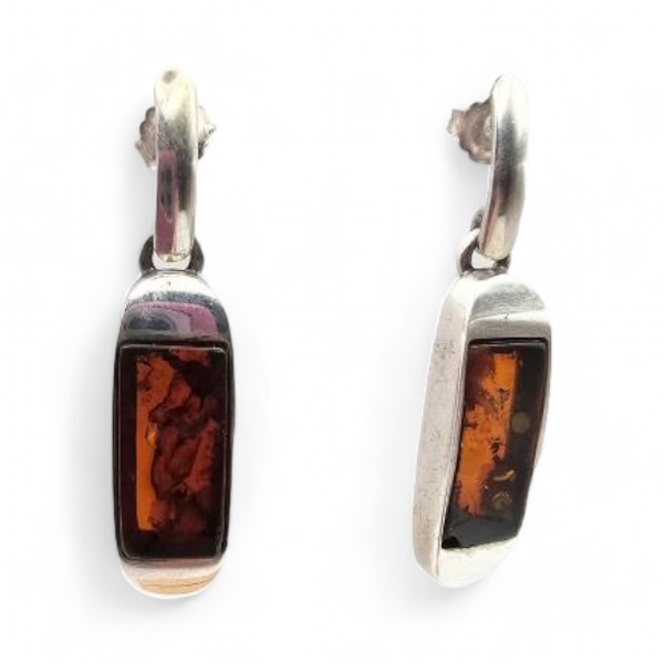 Dark Amber Sterling Silver Drop Dangle Earrings 8.9 g