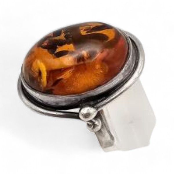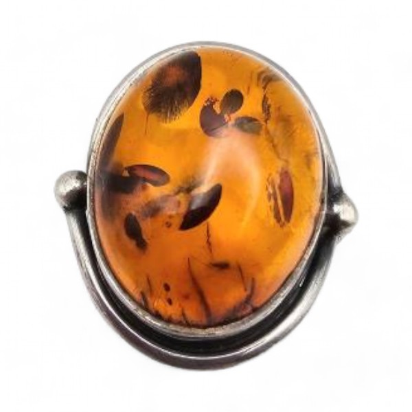 Amber Sterling Silver Ring Sz. 8.25 9.5 G