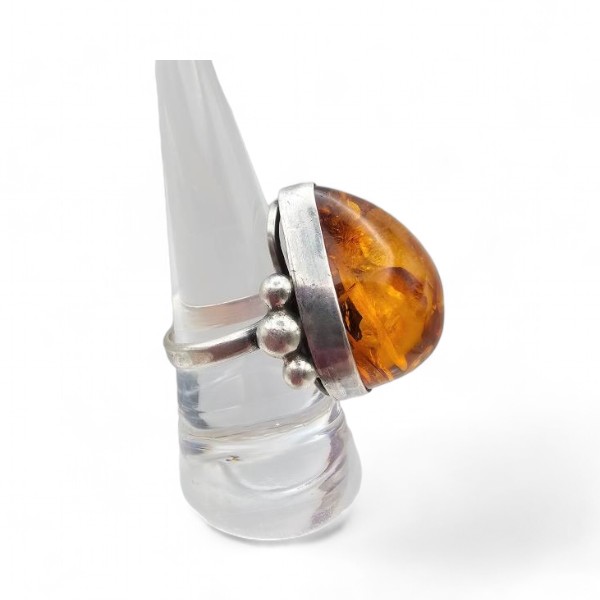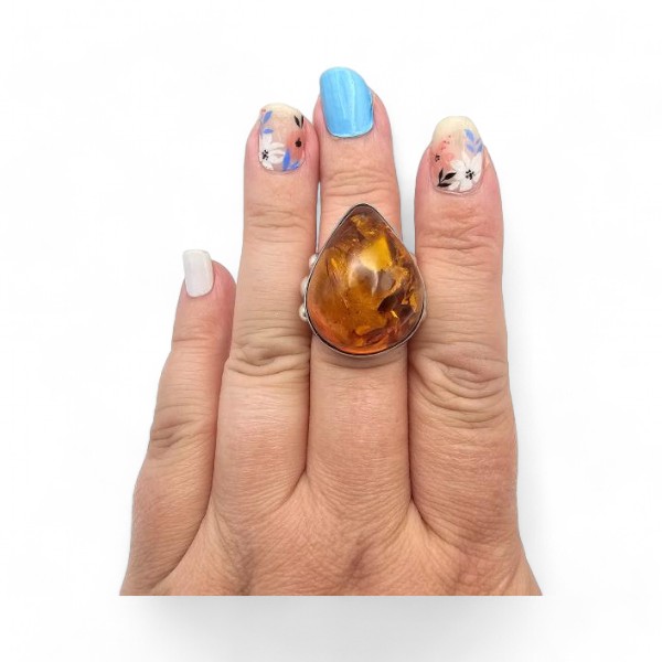 Huge Amber Sterling Silver Tear Shape Ring Sz. 8, 12.1 G
