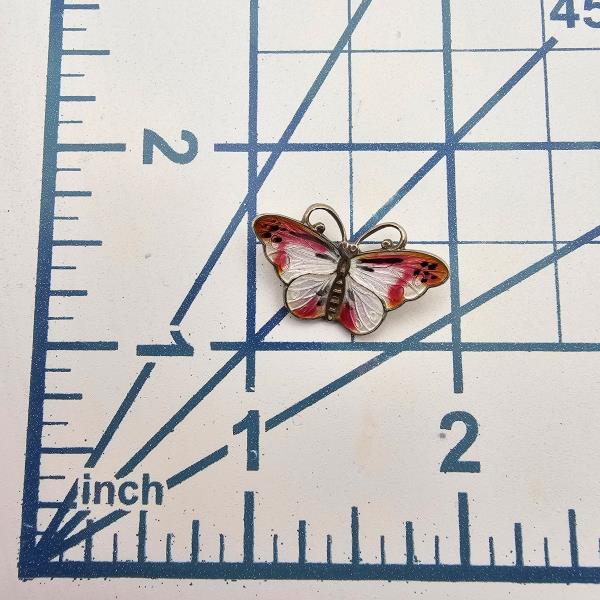CX P.G. Guilloche Enamel Sterling Silver Butterfly Pendant Pink and White 2.2 G