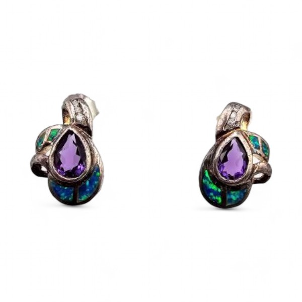 “5 Star” Amethyst Opal Sterling Silver Earrings 4.1 G