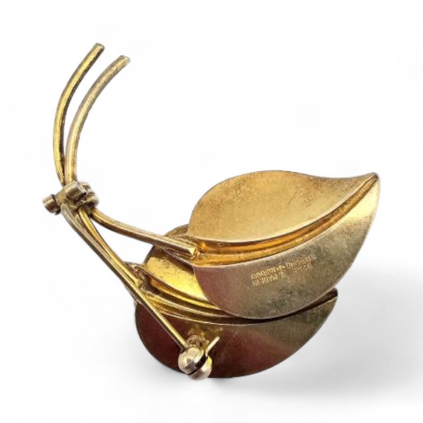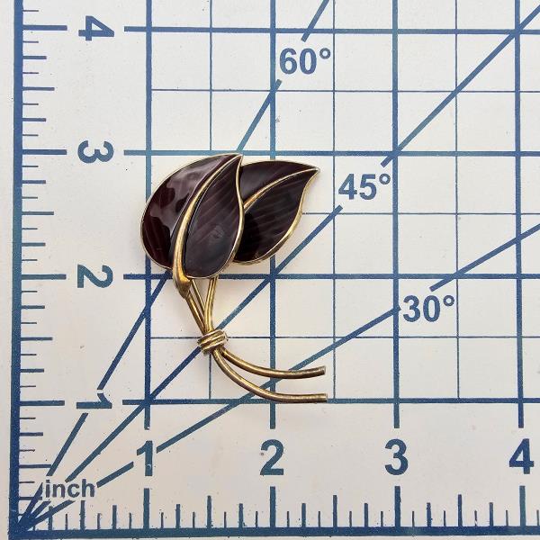 Norway Hans Myhre Guilloche Enamel Sterling Silver Plum Purple Leaf Brooch 11.3 G