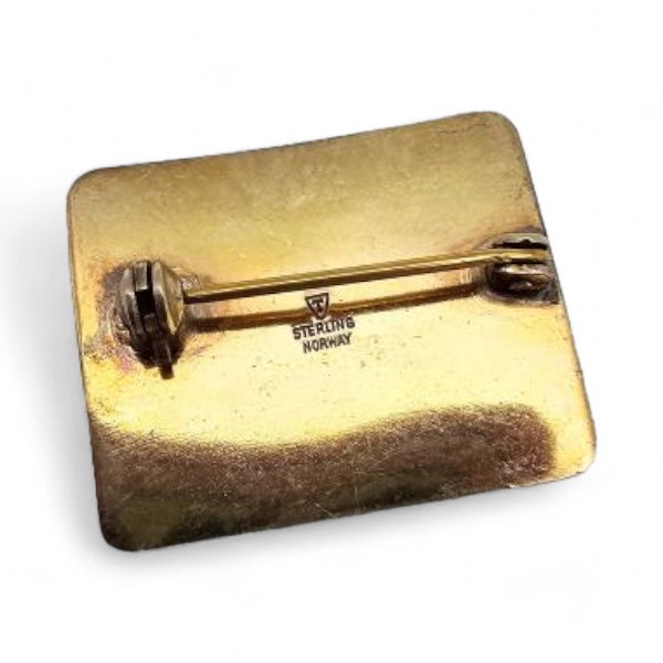 Norway T N.M. Thune Guilloche Enamel Blue Viking Ship Scene Brooch 8.7 G
