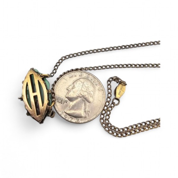 Vintage Carved Jade Sterling Silver Necklace 6.2 G