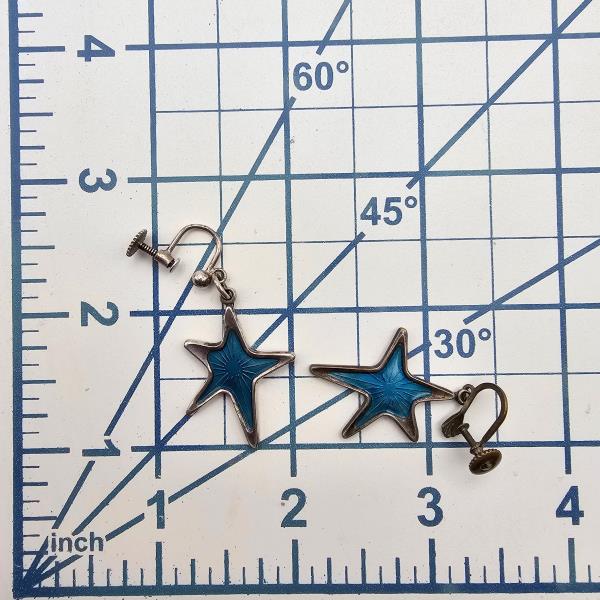 Denmark MEKA Guilloche Enamel Sterling Silver Blue Star Drop Earrings 6.2 G