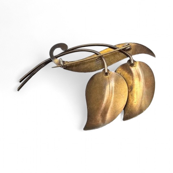 Norway Albert Scharning Guilloche Enamel Sterling Silver White and Black Leaf Brooch 14.1 G
