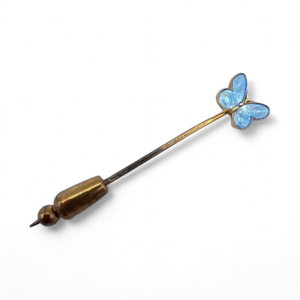 Norway Arne Nordlie Guilloche Enamel Sterling Silver Butterfly Lapel Stick Pin 2 G