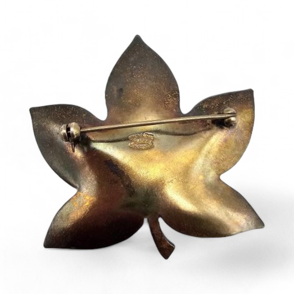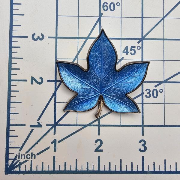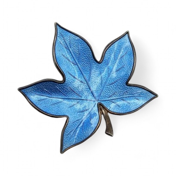 Denmark Brdr B Bjerring 1961-1976 Guilloche Enamel Sterling Silver Maple Leaf Brooch 17.7 G
