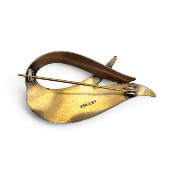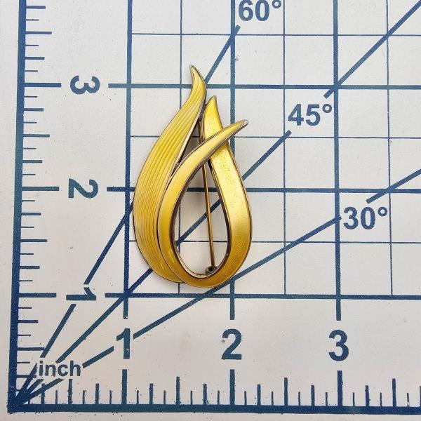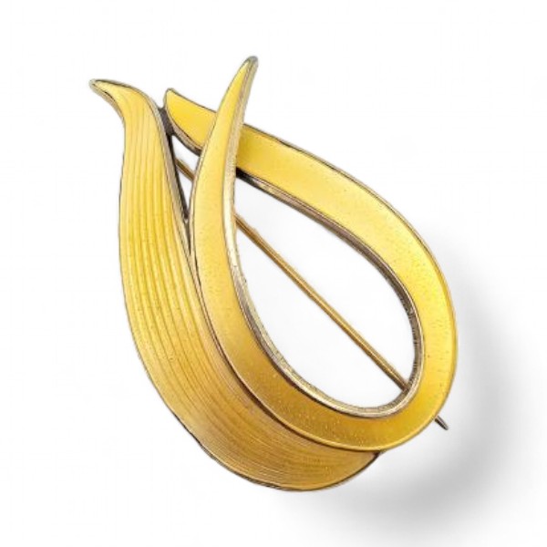 ALch Vintage Guilloche Enamel Sterling Silver Yellow Brooch 9.1 G