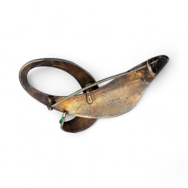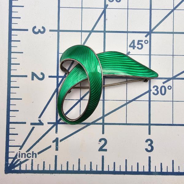 Norway SV Guilloche Enamel Sterling Silver Green Brooch 11.7 G