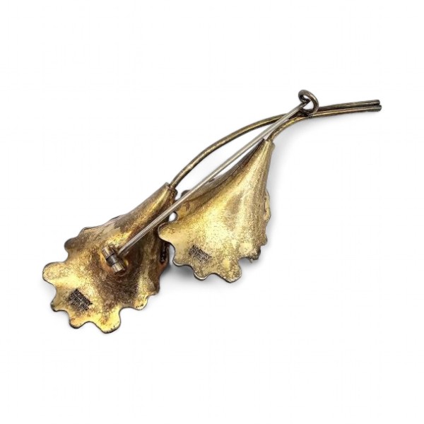 Norway Aksel Holmsen Guilloche Enamel Sterling Silver Flowers Brooch 13.5 G