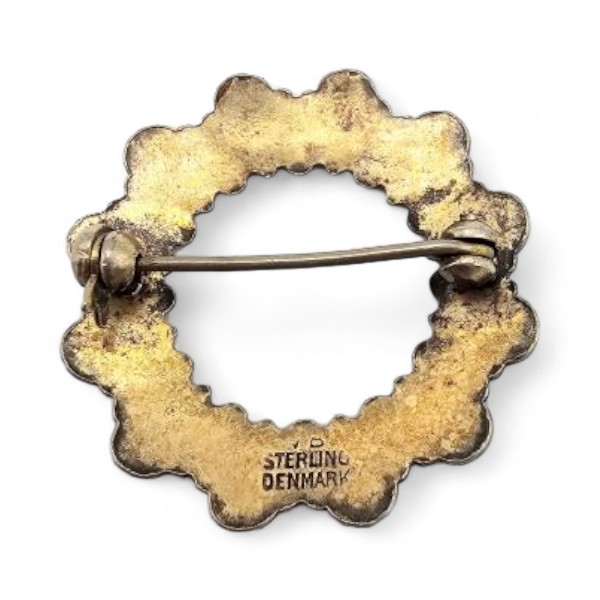 Denmark KVB Volmer Bahners Guilloche Enamel Sterling Silver Circle Brooch 4.3 G