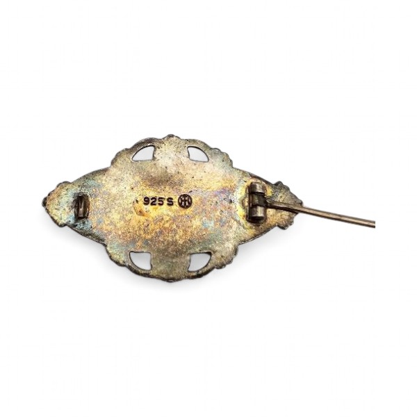 Norway Ottar Hval Guilloche Enamel Sterling Silver Blue Brooch 7.2 G