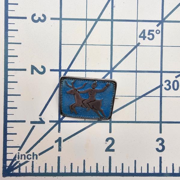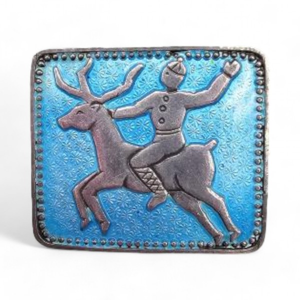 Norway H Ivar T Holth Guilloche Enamel Sterling Silver Deer Rider Brooch 6.2 G