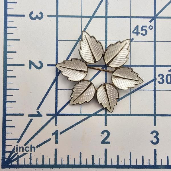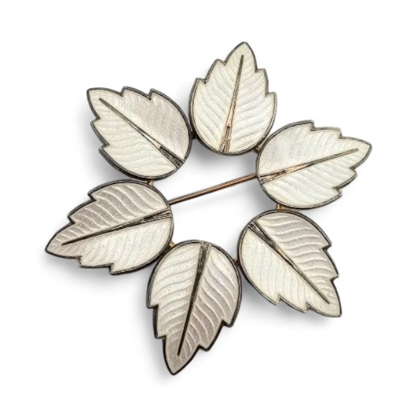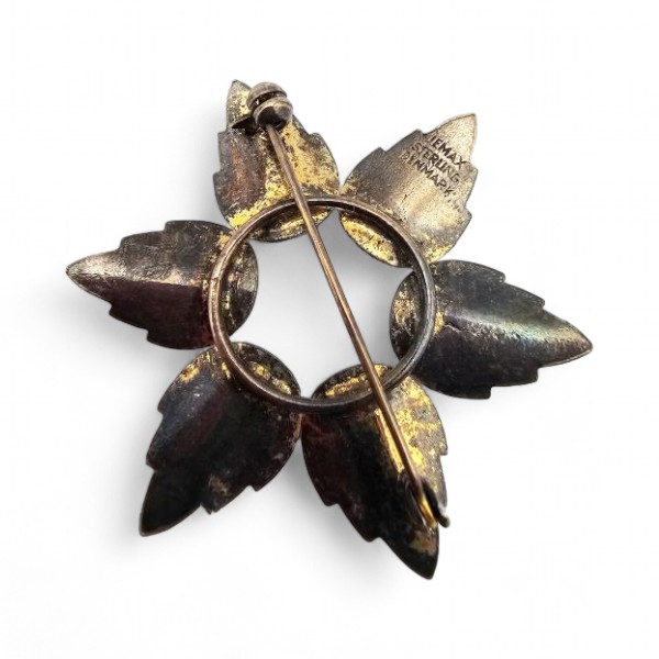 Denmark Jemax Guilloche Enamel Sterling Silver Leaf Circle Brooch 7.8 G
