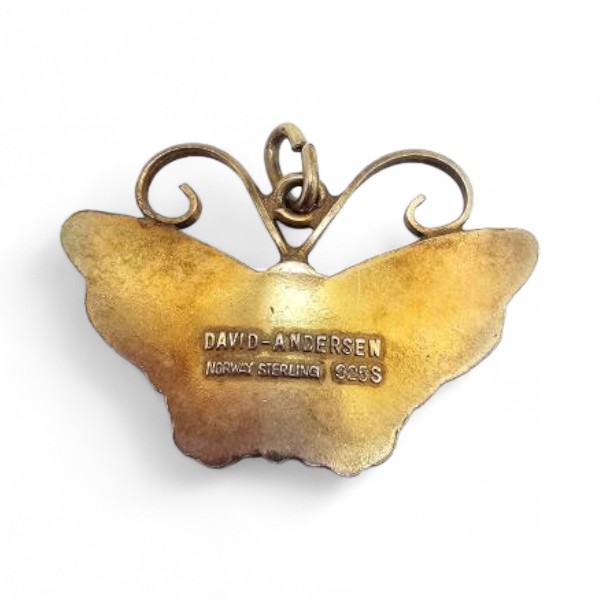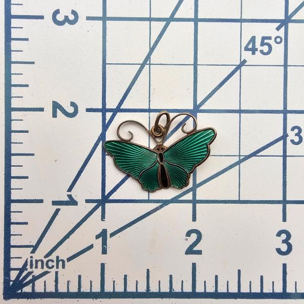 Norway DA David Andersen Guilloche Enamel Sterling Silver Green Butterfly Brooch 3.4 G