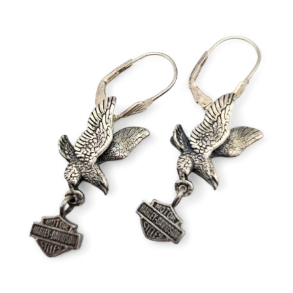 Harley Davidson Motorcycle Sterling Silver Eagle Drop Earrings 5.7 G