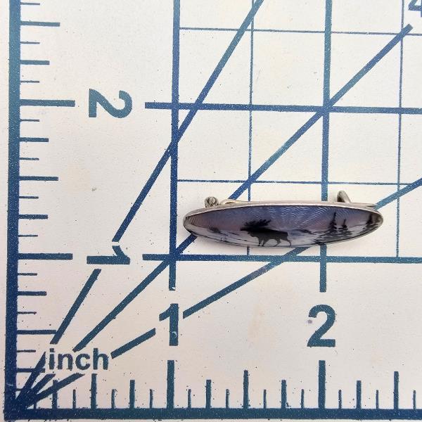 Norway Aksel Holmsen Guilloche Enamel Sterling Silver Moose Scene Brooch 3.6 g