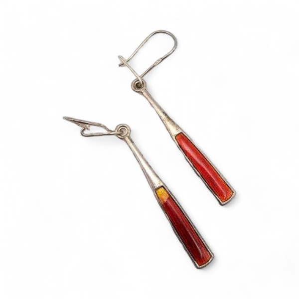 Norway Aksel Holmsen Guilloche Enamel Sterling Silver Red Drop Dangle Earrings 2.3 G